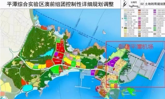 平潭綜合實驗區(qū)澳前組團控制性詳細規(guī)劃調(diào)整示意圖,圖中紅框部分擬建設(shè)海上機場
